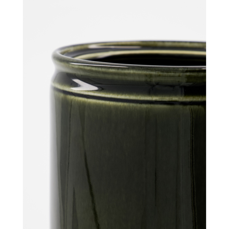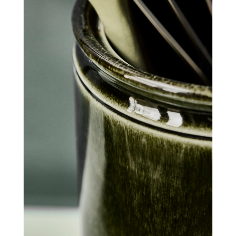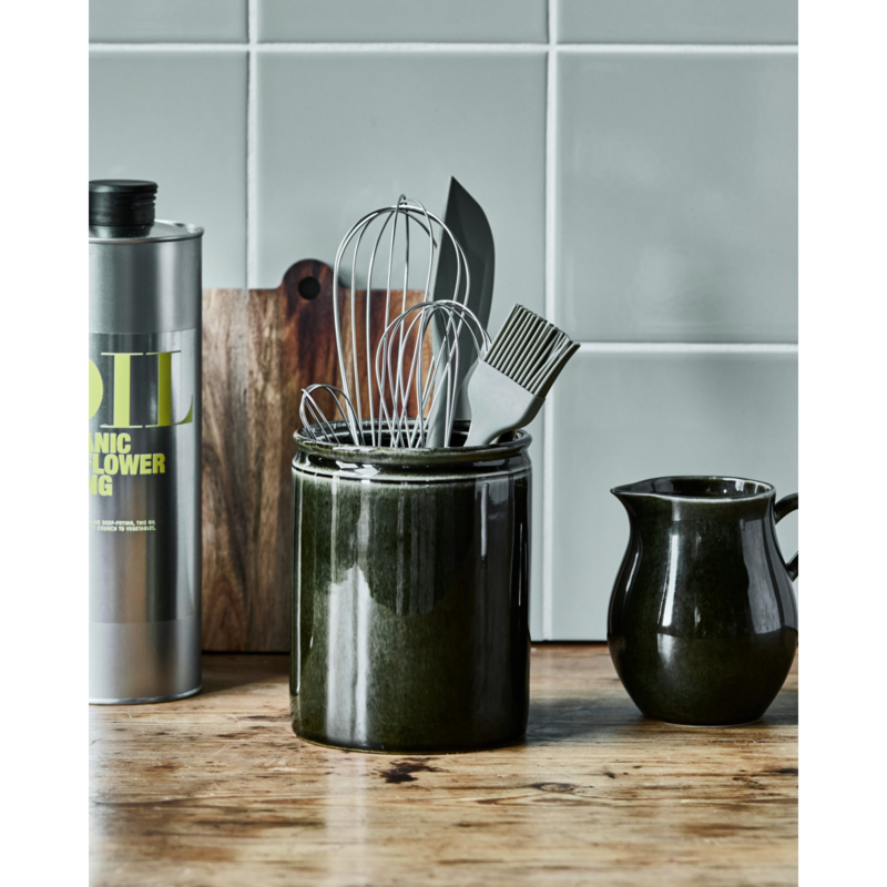 Organiseer je keuken met deze elegante, groen geglazuurde opberger van steengoed, perfect voor het opbergen van keukengerei. Het strakke design en de stevige constructie maken hem een stijlvolle en functionele toevoeging aan je aanrecht, zodat je keukenbenodigdheden altijd binnen handbereik zijn.