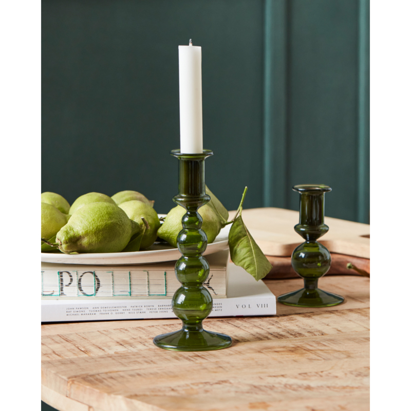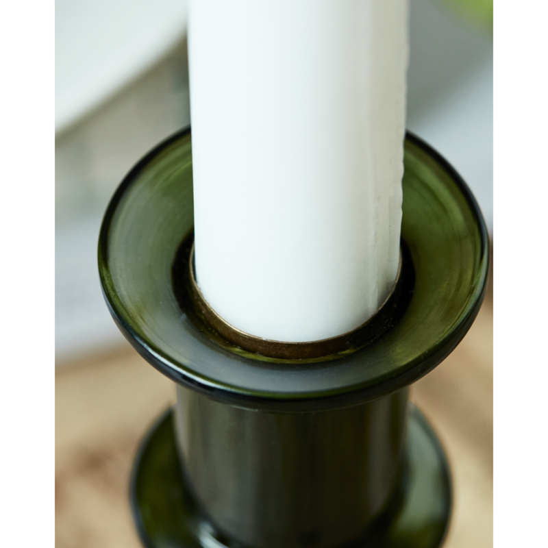 Voeg een vleugje kleur en gezelligheid toe aan je huis met deze groene glazen kaarsenhouder. Dankzij het elegante ontwerp kun je hem moeiteloos combineren met een andere groene houder uit dezelfde serie. Combineer hem voor een unieke look met metalen kaarsenhouders uit de HDLumi-serie en creëer een opvallend pronkstuk in je woon- of eetkamer. Het veelzijdige ontwerp voegt warmte en karakter toe en is een perfecte aanvulling op je interieur.