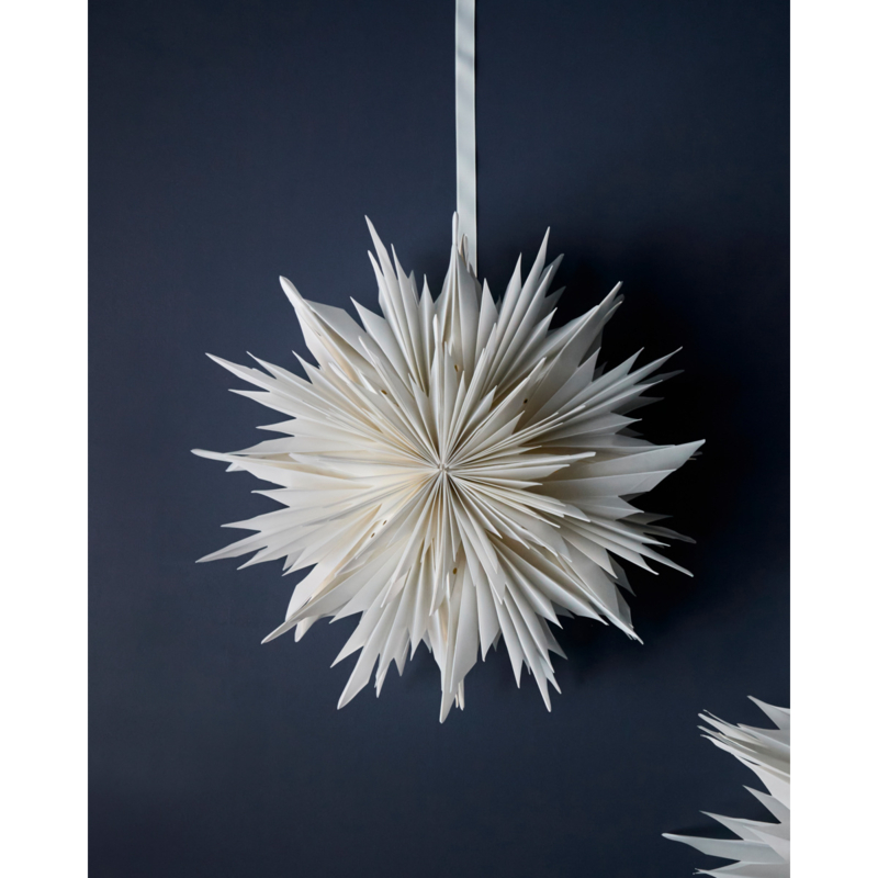 Verlicht de feestdagen met deze prachtige gebroken witte papieren ster. Handgemaakt met minutieuze aandacht voor detail, bestaat hij uit laag na laag delicaat papier, wat een verbluffend visueel effect creëert. Combineer hem met HDBursa voor een prachtige gloed.