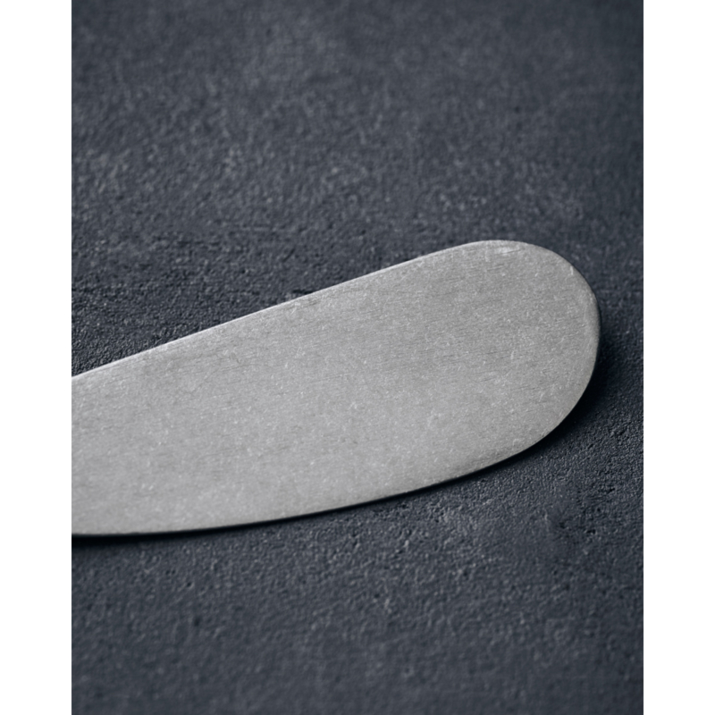 Voeg botermesjes toe als finishing touch voor een weloverwogen tafelopstelling. Nicolas Vahé biedt je een set van 4 messen in geborsteld roestvrij staal voor een minimalistische look. Gebruik een botermesje in plaats van een gewoon mes om te voorkomen dat er etensresten in de boter op tafel komen. Het is gewoon een nette en stijlvolle manier om de tafel te dekken. Maak van de messen een natuurlijk en elegant onderdeel van de tafelaankleding voor diners en afternoon teas, waar gasten zichzelf kunnen bedienen. De botermesjes maken deel uit van de tijdloze serie keukenartikelen Daily.