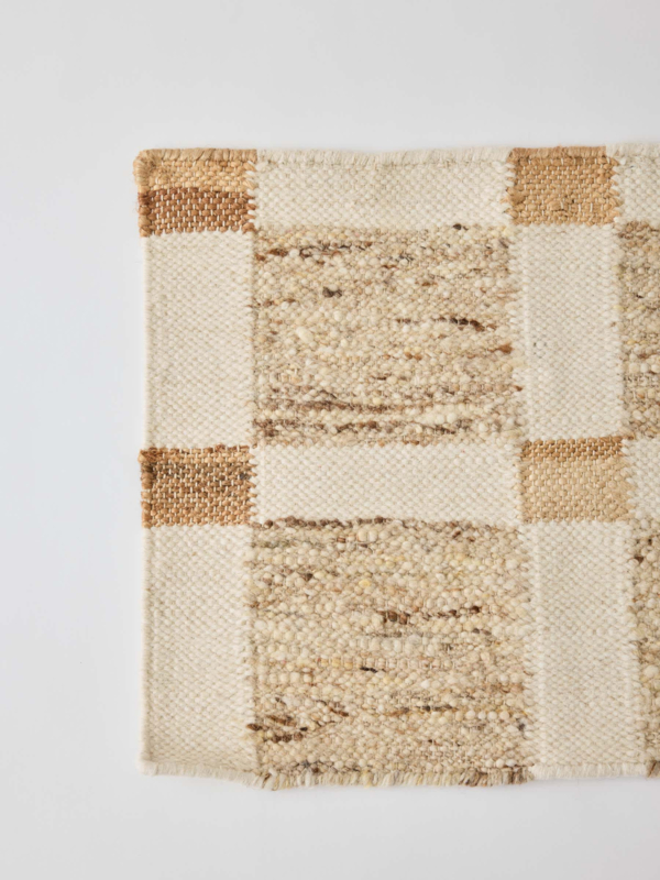 Het Taupo-tapijt van Tell Me More is gemaakt van een mix van 70% wol, 20% hennep en 10% katoen, met een schering van 100% katoen. Het tapijt heeft een prachtig patroon van kleine vierkantjes dat een levendige en textuurrijke uitstraling geeft. Verkrijgbaar in zowel loper- als klassieke rechthoekige vorm, is het gemakkelijk te plaatsen in woonkamers, hallen of slaapkamers. De gebroken witte en beige kleurstelling voegt een tijdloze touch toe die in veel verschillende interieurs past.