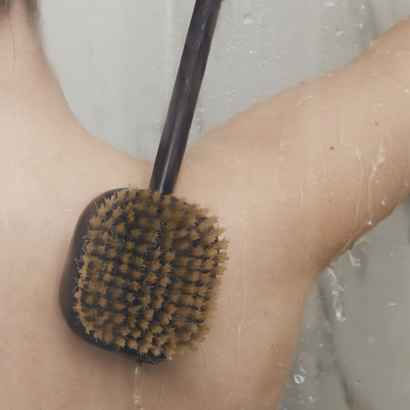 De mooie, nieuwe Borago collectie van het Deense label Meraki is een blikvanger in je badkamer. De items hebben een matbruine afwerking. Deze body brush heeft 2 kanten, een zachte en een harde, en is extra lang. Gebruik hem onder de douche als scrub of voor een lekkere massage.